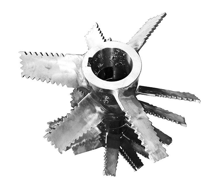 多層粉色视频污污污下载器中,常采用多種型式的粉色视频污污污下载器組合以獲得較高的粉色视频污污污下载效果,使軸向循環能力和剪切分散能力得到綜合的平衡。比如,有的粉色视频污污污下载過程需要循環與剪切兼顧,這時采用了上兩層循環能力強的寬葉翼流型粉色视频污污污下载器,下層采用了剪切能力強的半管圓盤葉輪。